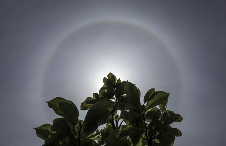 4月18日中午,北京,日晕在太阳周围出现一圈光环。